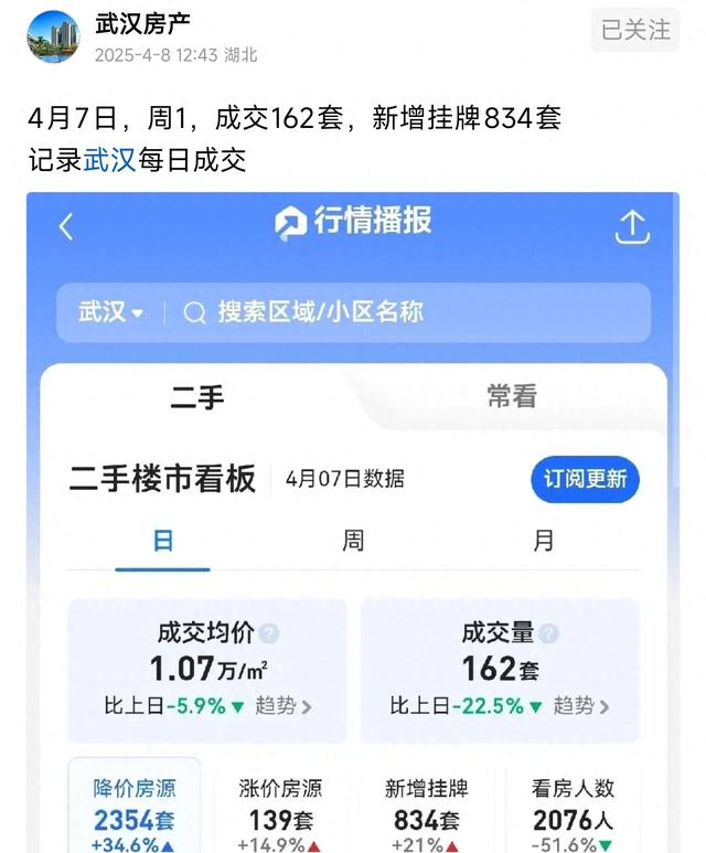 楼市新机遇,武汉楼市太燃了,二手房单日成交162套,环比下跌22.5%,释放了什么信号?