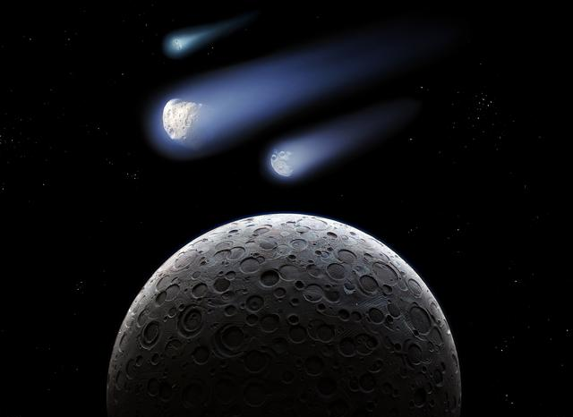 科学家们通过对月球表面的观测和探测,发现了许多撞击坑和裂谷,这些都是小行星和彗星撞击月球留下的痕迹。据估计,月球表面每平方公里平均有2000个撞击坑。这些撞击坑中有些是很古老的,有些是相对较新的。其中最大的一个撞击坑是南极-艾特肯盆地,直径约为2500公里。这个撞击坑形成于约40亿年前,当时一颗直径约为170公里的小行星以每秒20公里的速度撞击到月球上。如果没有月球拦截这颗小行星,它可能会撞击到地球上,并造成巨大的破坏。除了小行星和彗星之外,月球还可以为地球挡住一些太阳风暴和宇宙射线。