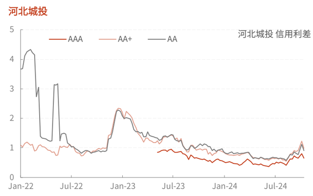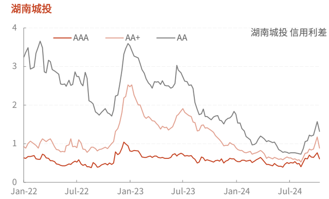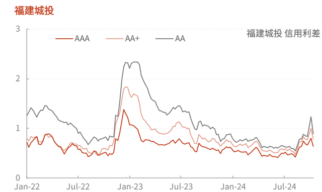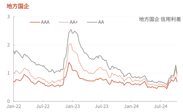上周行业信用利差整体下行。申万一级行业中,AAA级行业信用利差下行最大的为建筑装饰,下行19BP;AA+级行业信用利差下行最大的为建筑装饰,下行29.4BP;AA级行业信用利差下行最大的为休闲服务,下行38.6BP。上周煤炭和钢铁信用利差均下行。三个级别的煤炭信用利差分别下行19BP、下行28.9BP、下行12.5BP。AAA和AA+级别的钢铁信用利差分别下行16.4BP、下行18.9BP。上周各等级城投和非城投信用利差均下行。三个级别的城投信用利差分别下行16.9BP、下行29.9BP、下行31BP;三个级别的非城投信用利差分别下行16BP、下行23.1BP、下行22.1BP。上周国企和民企信用利差均下行。三个级别的中央国企信用利差分别下行13.6BP、下行20.4BP、下行20.5BP;三个级别的地方国企信用利差分别下行16.5BP、下行28.8BP、下行30.1BP;三个级别的民营企业信用利差分别下行19.9BP、下行20.8BP、下行10BP。上周区域城投信用利差涨跌互现。利差水平:上周AAA级信用利差最高的三个区域分别为云南、甘肃、河南,信用利差分别为158、107、107BPs;AA+级信用利差最高的分别为青海、云南、广西,信用利差分别为204、186、137BPs;AA级信用利差最高的分别为四川、天津、陕西,信用利差分别为170、166、155BPs。环比变动:上周AAA级信用利差下行最多的是云南,下行52.1BP;AA+级信用利差下行最多的是黑龙江,下行39.1BP;AA级信用利差上行最多的是四川,上行2.2BP,下行最多的是湖北,下行39.3BP。风险提示:因数据来源或统计方法导致结果存在误差。信用利差分布(AAA级)