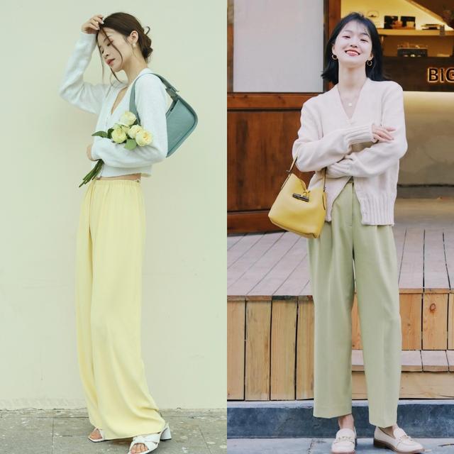 设想一条明黄色或者粉红色的直筒长裤,搭配上纯白色的上衣,立即呈现出清新且富有朝气的春季形象。这种搭配不仅能够点亮整个造型的色彩,也很容易在人群中凸显穿搭者的青春态度。