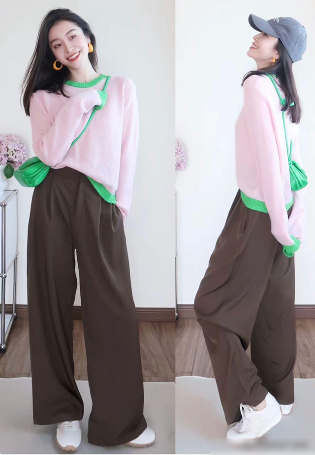 并且具体怎么选择彩色系列或是稳定色系的毛衣和奶奶裤可以由穿着者具体决定,如果想要彰显出其个性色彩,那么可以选择鲜艳靓丽一些;但如果想要表现出简约氛围,那么可以选择比较中性色彩。