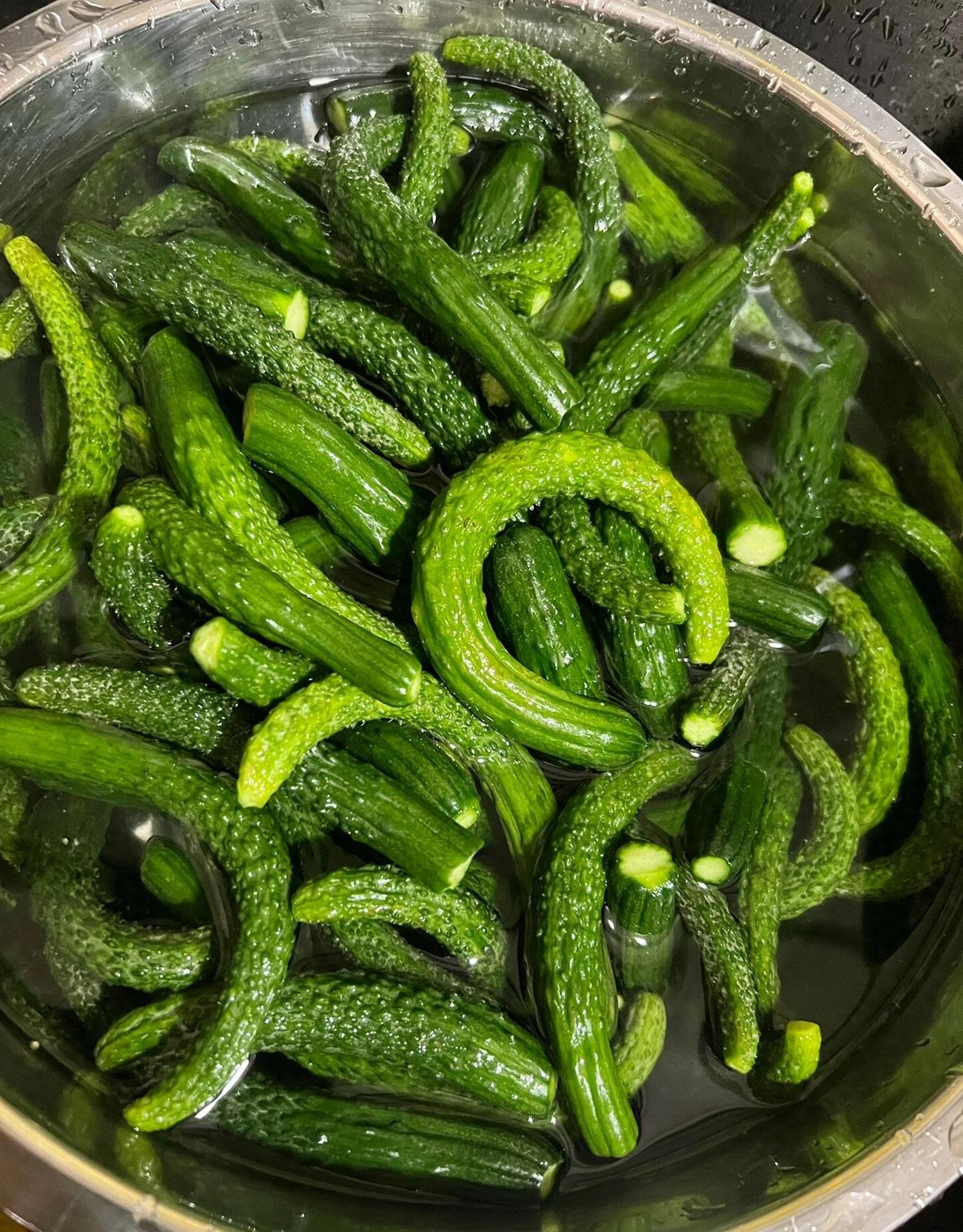 老张的媳妇说,这黄瓜的杀青是关键一步。