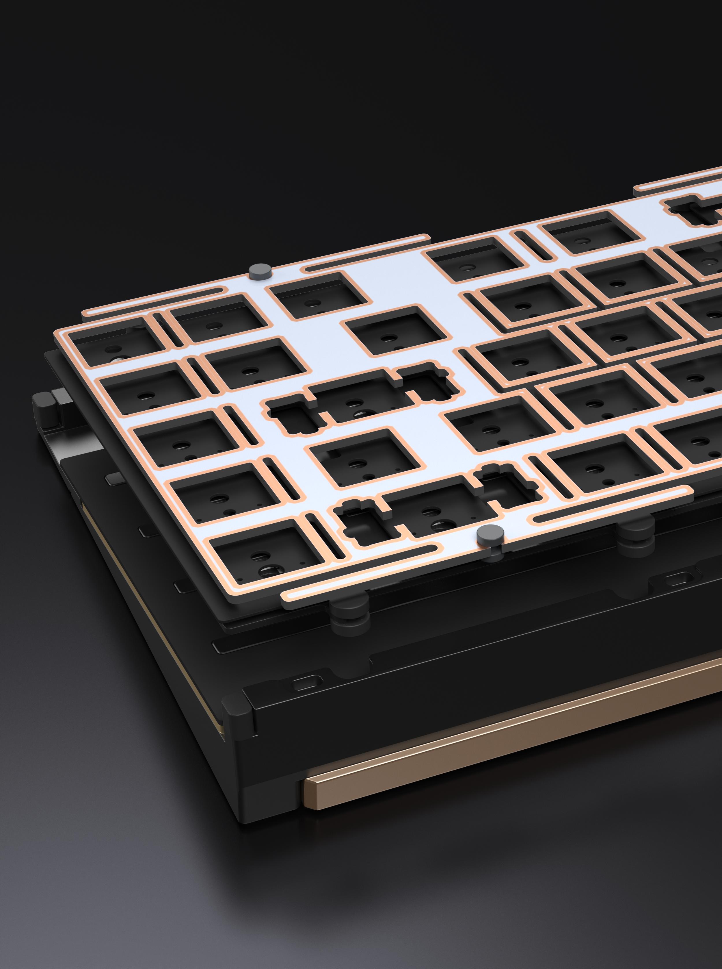 ● 换成PCB Gasket,敲击更有反馈,声音稍亮;