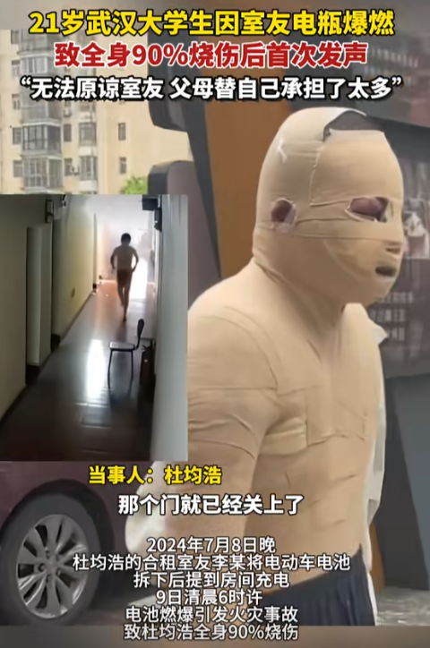 2024年7月,武汉大学生杜俊浩暑假打工和室友李佳俊合租,李佳俊却占便宜每天将电动车推到屋内充电。