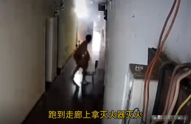 刹那间,火苗猛地蹿起,照亮漆黑的房间。李佳俊被爆炸声惊醒,立刻从床上跳起,冲向门外拿灭火器。