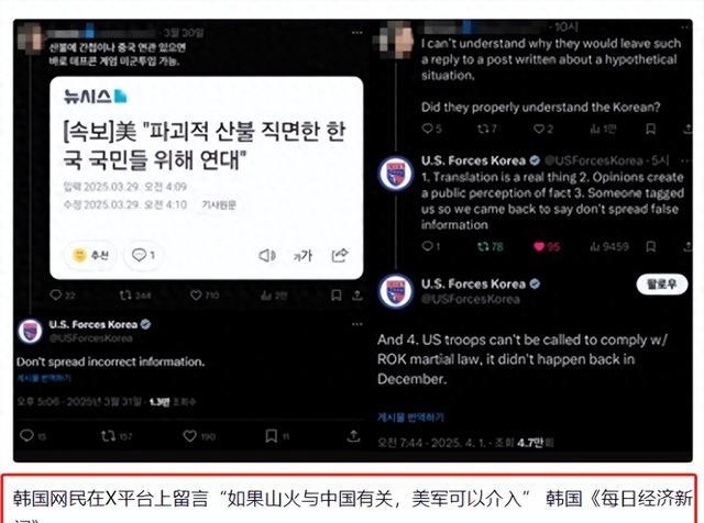 结果韩国网友则是将这次山火“赖在了咱们中国头上”!还要求美军介入.....