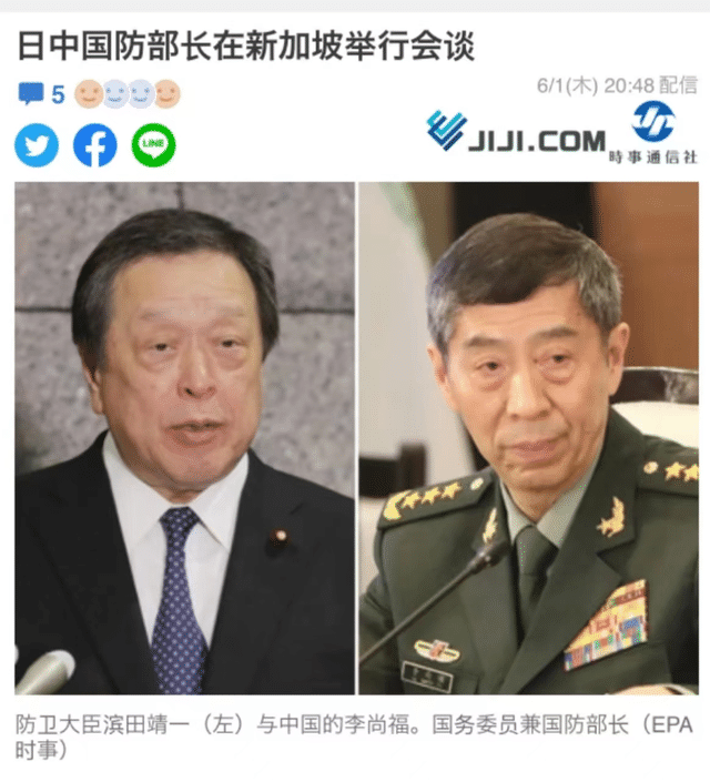 (据日媒消息,中日两国防长将在香会上举行会谈)