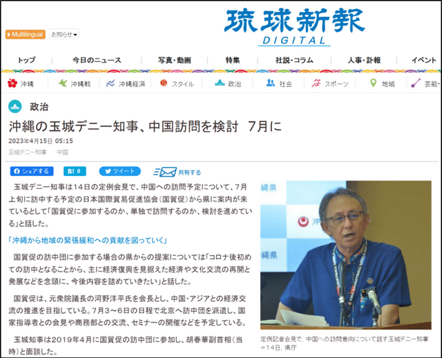 (琉球副知事寻求我方驻日大使,要将现任地名 “冲绳”换回“琉球”)