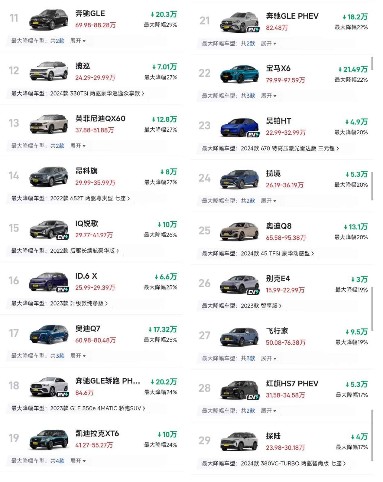 根据最新的市场数据显示,在经历了几轮降价后,豪华中大型SUV的销量并没有如预期般上升,反而呈现出了一种复杂的局面。以奥迪和奔驰为代表的豪华品牌降价幅度惊人,许多消费者开始意识到,过去对于这些品牌的奢华和高端的印象可能并不再牢固。奥迪Q6的降价高达15.86万元,降幅接近34%,这让许多人在惊叹于价格的同时,也开始质疑这些品牌的价值定位。