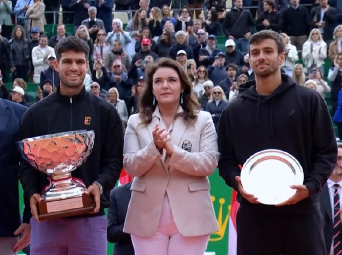 我们再回到赛场。北京时间昨晚, ATP1000蒙特卡洛大师赛精彩落幕。在单打终极决战中,2号种子、西班牙红星阿尔卡拉斯克服先丢一盘的不利局面,以3-6 6-1 6-0强势逆转13号种子、意大利名将穆塞蒂,首次在蒙卡站捧起冠军奖杯。