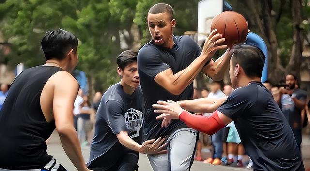 库里身材在NBA,那真算不上魁梧,甚至因为身体不够强壮,还经常被对手针对。现在就算增肌了,遇到重型后卫,或者被包夹,库里表现都会很挣扎。但是来到野球场,库里身材就跟奥尼尔一般,在普通人面前,那就是纯纯降维打击。跟同身高球迷互动,库里身体厚度和宽度,完全不是一个级别,这差距肉眼可见。
