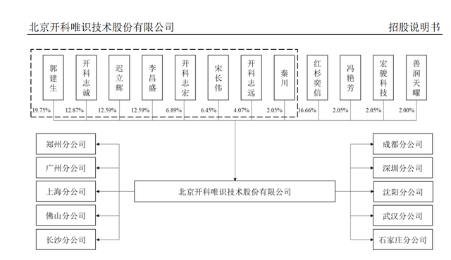 股权结构方面,郭建生、迟立辉、李昌盛、宋长伟、秦川直接控制发行人53.42%表决权,通过开科志诚、开科志宏、开科志远三个持股平台间接控制公司23.83%表决权,合计控制公司77.25%表决权。这意味着,创始团队只卖掉了部分股权,而红杉和海南善润天曜实现完全退出。