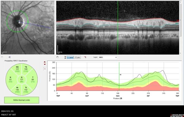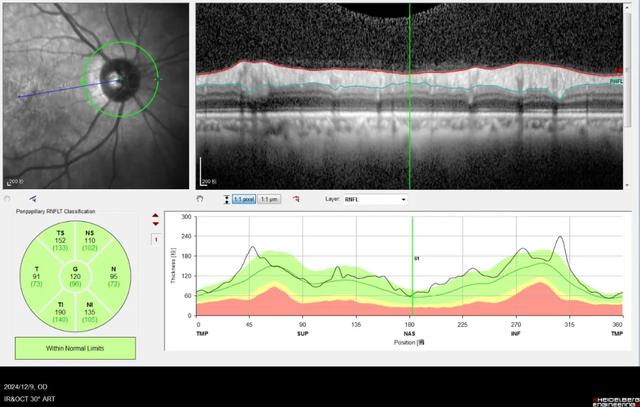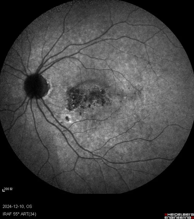 既然锁定调查方向在黄斑,那接下来最应该做的就是黄斑OCT检查。在经过半个小时左右的散瞳后,OCT结果提示,双眼黄斑中心凹视网膜外层结构明显受损,椭圆体带不连续,色素上皮不规则隆起。