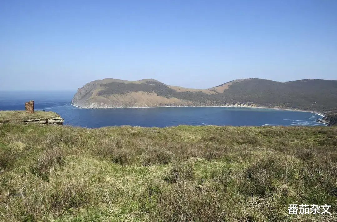 尽管大部分时间都在雾中,但依然能很清楚地知道自己身处何地:船底下的浪花翻滚,船只时而飞起,撞击水面发出响亮的声音。作乾意识到他们已经驶入了乌苏里湾,这里没有岛屿,面朝开阔的日本海。最终,雾气在湾的另一侧散去,左侧是黑色的大陆海岬轮廓,在逆光下清晰可见,右侧则是阿斯科尔德岛的褐色背脊: