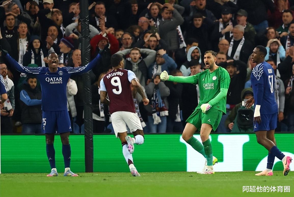 大巴黎与维拉次回合比赛中,前半个小时大巴黎依靠高效反击取得2球领先,加之首回合3:1的比分,比赛似乎就要失去悬念。不过维拉并没有放弃,蒂莱曼斯制造帕乔乌龙吹响反击号角;下半场麦金打进世界波,拉什福德连过2人后助攻孔萨,总比分来到了5:4!得亏多纳鲁马比赛末段连扑蒂莱曼斯的头球和阿森西奥的单刀,加之帕乔补时的门线解围,大巴黎惊险晋级。