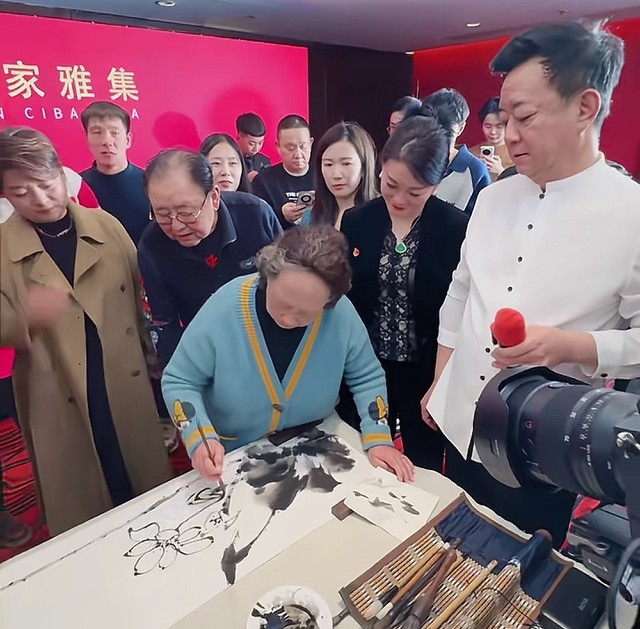 他和史国良、孙桂田等人共画了一幅荷花图,现场气氛十分热烈。