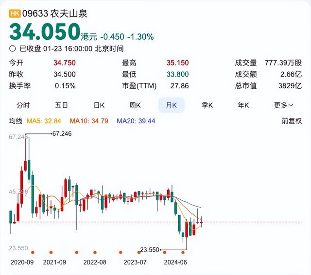 农夫山泉上市首日高开85.12%,报39.8港元/股,总市值达4400亿港元,直接把实控人钟睒睒身家冲至578亿美元,超越“二马”做了半小时的中国新首富。