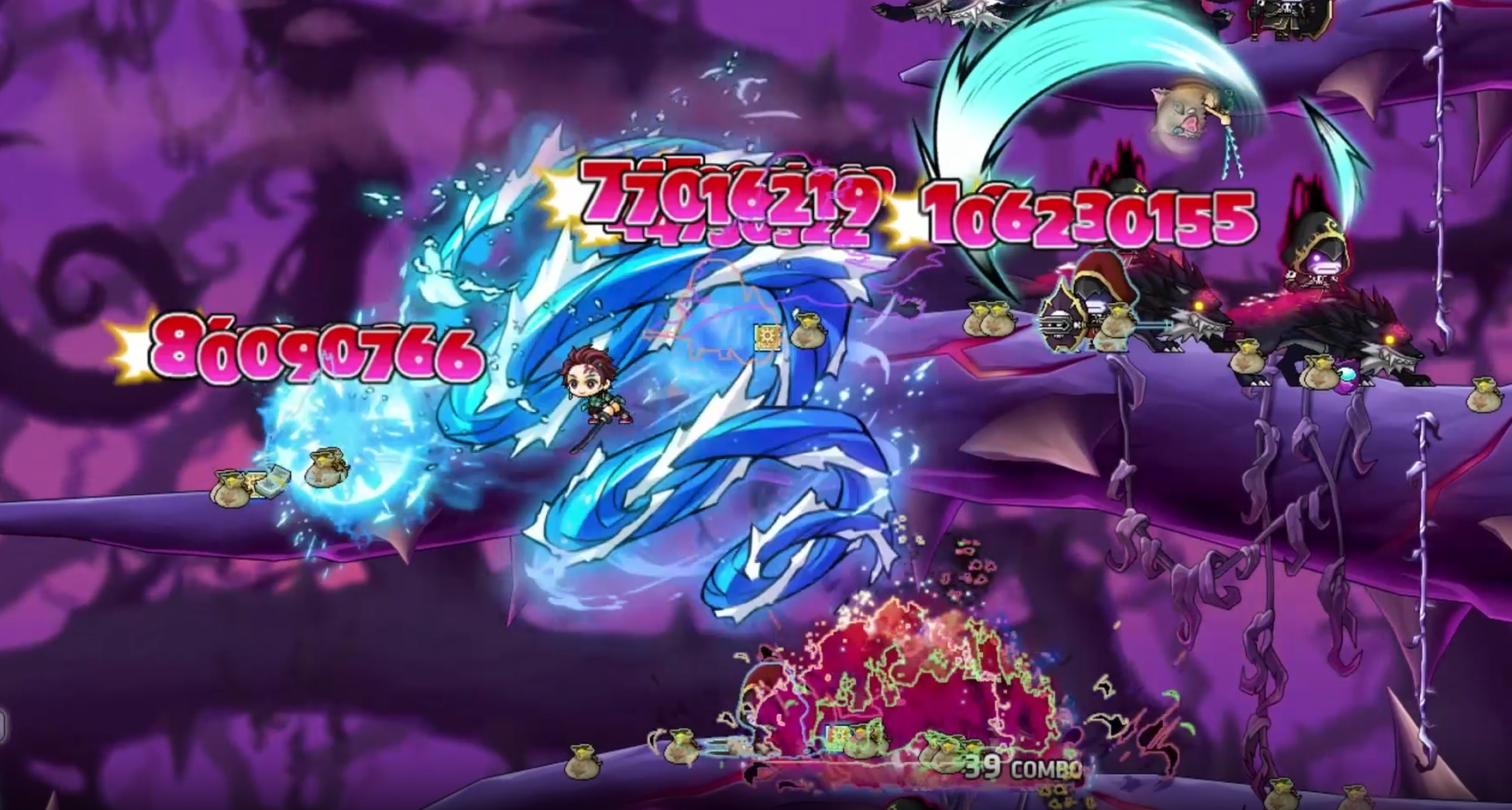 从目前公布的PV画面可以看到,玩家将可以操控主角灶门炭治郎进行冒险,其标志性剑招“水之呼吸”也在游戏中得到了100%完美重现!据说,活动期间包括善逸、伊之助、祢豆子等原作角色也会登场,玩家将可以在《冒险岛》中与《鬼灭之刃》角色并肩作战!