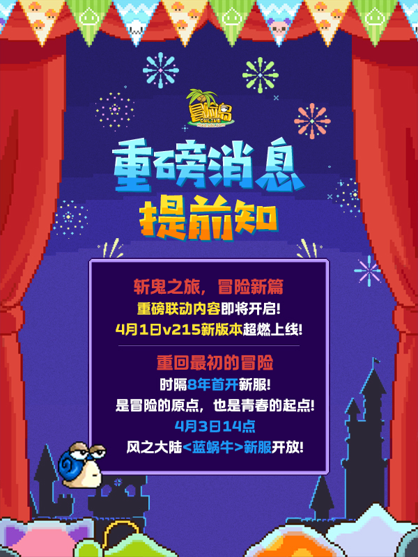 尽管手游市场蓬勃发展,但总有一些经典网游,依然低调的姿态持续活跃着,我们今天的主角:2004年上线的《冒险岛》国服,不仅线下活动频繁,线上活动更是接连不断。最近,《冒险岛》又整了一波大活,宣布将在4月3日开放全新服务器,守候8年,老玩家总算等到我岛开新服了!