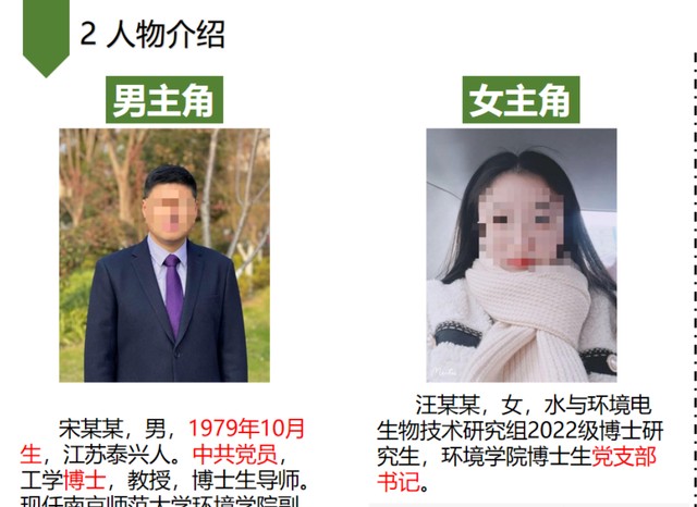 PPT中提到的两位当事人,环境学院副院长是宋某,女博士生是汪某,二人的全名没有公开。