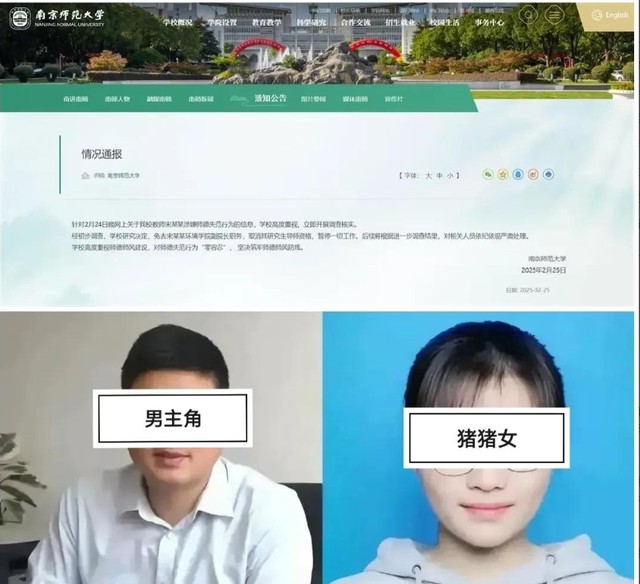如今两位当事人已经成为网络红人,南京师范大学也已经做出了情况通报。