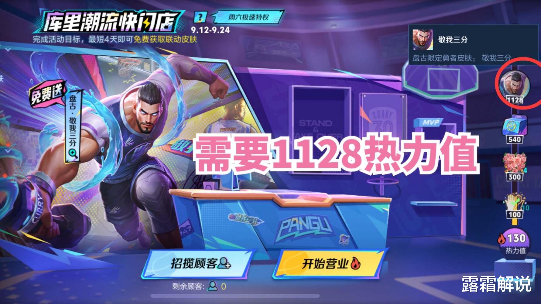 理论上来说,玩家最快只需要4天就可以拿到盘古的这款联动皮肤了,第一天完成所有的任务,包括登录游戏、进行对局还有拥有盘古这个英雄并且熟练度达到绿色,就可以获得8个顾客,理论上能够拿到380热力值。