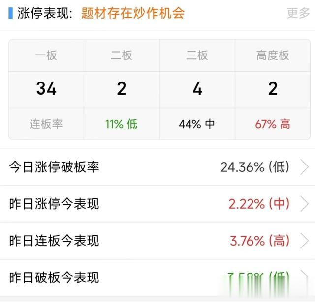 首板涨停34只,二板涨停2只,三板涨停4只,四板涨停2只,今天连板高度到了四板,看明是否有机会打开5板的高度了。