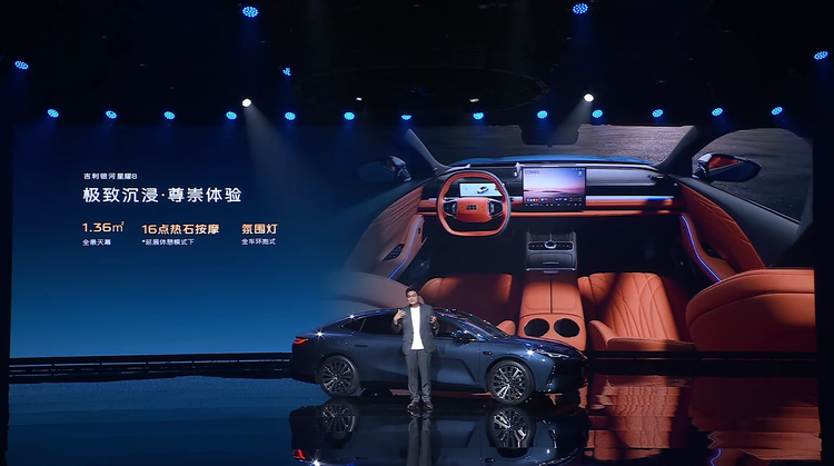 更让人心动的是配置。别人家激光雷达选装加2万,星耀8直接标配,还附赠高阶智驾:高速自动变道、120km/h紧急避让、连侧方停车都能一把进。最实用的是“开门杀”预警,解锁自动检测后方来车,这功能对电动车门家庭太友好了。座舱里更是堆料狂魔:536mm加长行政座椅(同级唯一电动调节)、23个喇叭的7.1.4全景声音响,功放功率2000W,官方说“座椅成本比你家沙发贵2万”,虽然有点夸张,但坐过的媒体都说“堪比头等舱”。