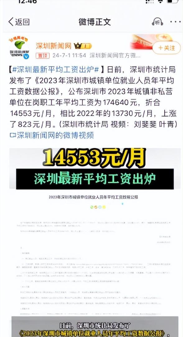 2024年深圳城镇非私营单位就业人员年平均工资超过15万元,高收入让年轻人更安心生育。