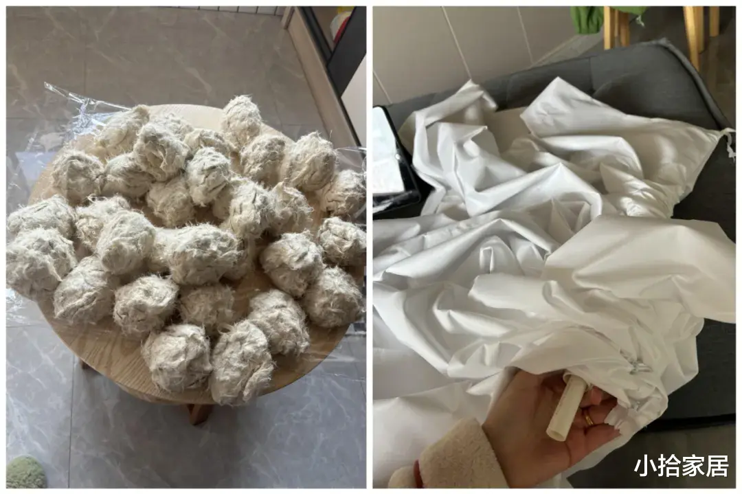 3)根据商家提供的示意图,按顺序将每团羽绒塞进被壳里,最后晾干后再拍散就做好了。