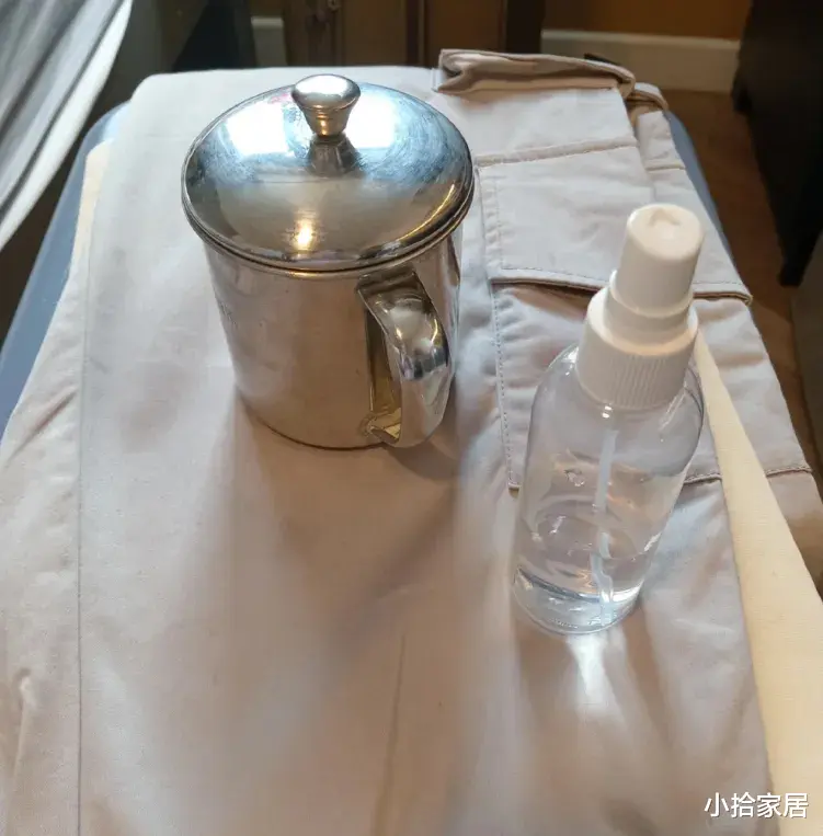 后来看到中年阿姨的方法,发现用开水熨衣服效果更好。方法就是找个喷壶,以及玻璃或者不锈钢容器,然后一边喷凉水,一边用装开水的容器进行熨烫,效果特别明显。
