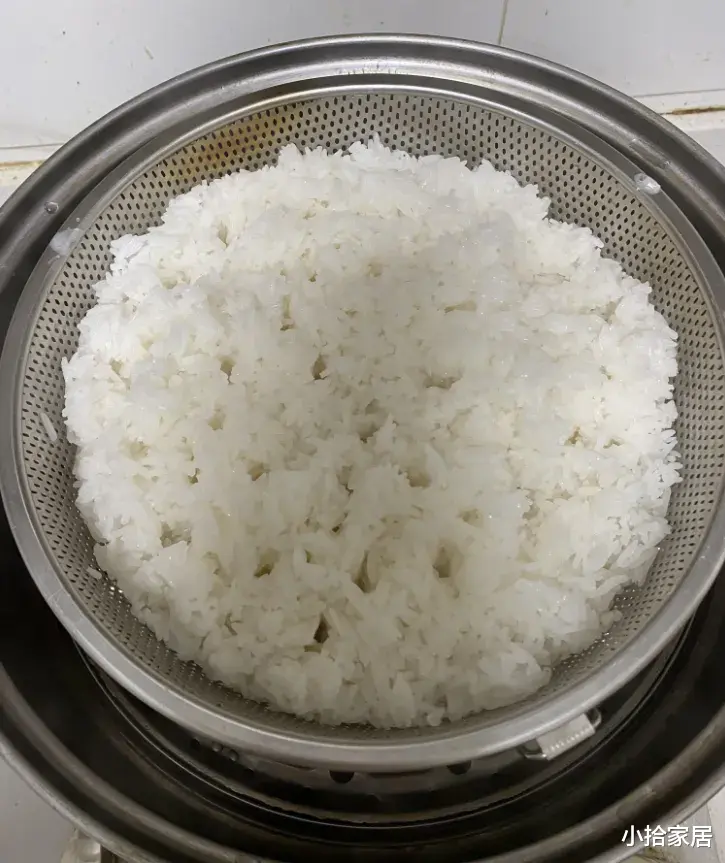 Tips:一定要平放在桌子上,轻压慢推就好。七、沥水蒸米饭现在我们吃的米饭,基本上都是用电饭锅煮的,不仅操作特别方便,还能精准控制时间。
