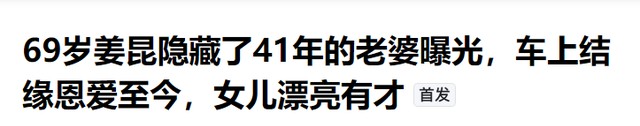 中国网推荐2019-10-24 ,关于“69岁姜昆隐藏了41年的老婆曝光,车上结缘恩爱至今,女儿漂亮有才”的报道