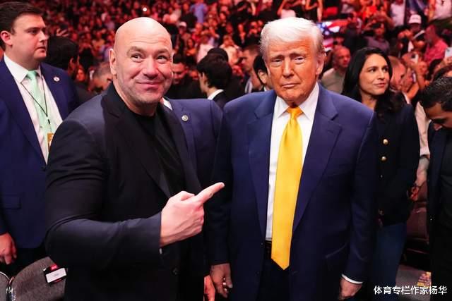 在上周末UFC的比赛中,因关税风波饱受质疑的特朗普亲临现场,接受现场观众欢呼“U-S-A”,这项赛事集中着大量他的支持者。而在去年11月赢得选举之后,他也象征性的出现在UFC赛场。UFC主席白大拿是特朗普的铁杆追随者,对特朗普马首是瞻,双方被指存在隐性利益关联。