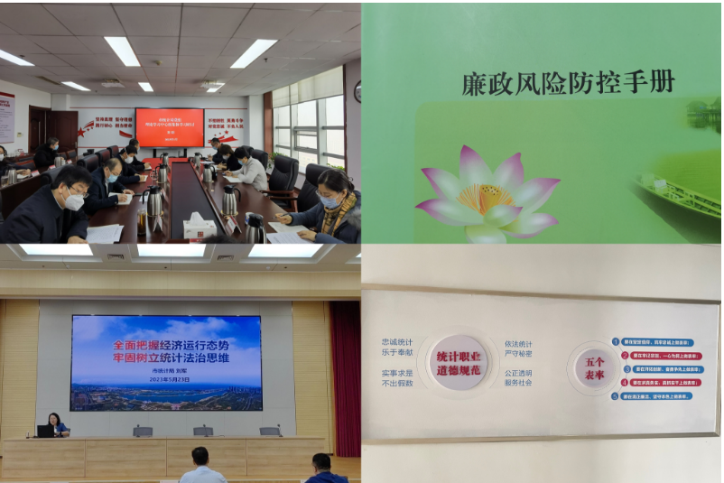 在依法统计依法治统上用智。一是严密制度笼子,持续健全规范用权的责任体系。全面推动规范用权融入日常、抓在经常。要求局属各科室、单位要结合工作职责,每年定期排查廉政风险。围绕完善内部管理、规范工作程序、强化岗位监督等方面,研究制定防控措施,最大限度减少源头性廉政风险发生。二是牢固树立依法统计的意识,坚决反对在统计数据上的弄虚作假行为。维护统计数据的公信力,努力在统计系统内部形成一道有效的预防和制止统计弄虚作假的廉洁屏障,始终在机关内部保持严的基调、敢于善于斗争,自觉接受各方面监督,统计干部坚守政治红线、纪律高压线、廉洁底线,杜绝“数字上的腐败”。