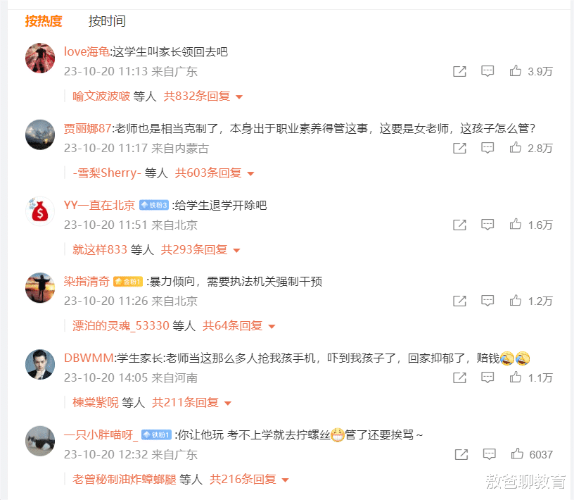 相信这位老师应该知道没收手机的潜在风险,我想他无非是看不下去了,或许又“仗着”自己人高马大、身强体壮的优势吧,壮着胆子上前把学生的手机给“没收”了。有网友感慨:如果是一般的女教师,肯定没有勇气这样做,只能听之任之而已。