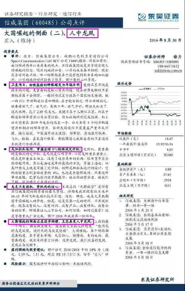 在其研报《大国崛起(二)人中龙凤》中,不但宣称:买信威集团就是买中国实现大国崛起的信念,更直夸王靖为“人中龙凤”。