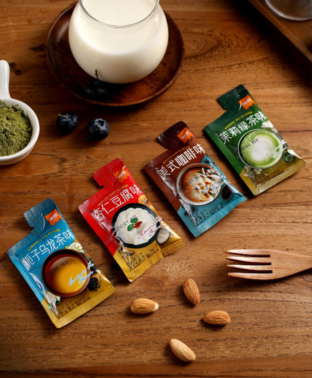 其中,杏仁豆腐味复刻传统经典,杏仁和奶香结合,有着独特的香气和淡淡的甜味;美式咖啡味焦香微苦,对于喜爱咖啡的人来说是“解馋”必备。另外,还有清新解腻的茉莉绿茶味与香气清雅的栀子乌龙味双茶CP,让消费者感受到中式风味之美。