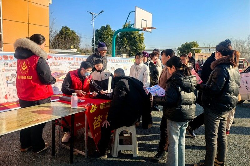 2025年1月16日,适逢来龙乡大集,集市热闹,郭庄村文化广场亦热闹非常。县文联“百花迎新乐中原 祥蛇献瑞促振兴”第9场活动在此开展,并邀请华兰生物潢川单采血浆站开展义诊,县司法局不约而同来此开展“迎新春 送法治”活动。来龙乡党委委员、副乡长方莲凤、宣传委员王雪琴与县文联王瑛琳一起为该村10位三星文明户颁发证书和纪念品。