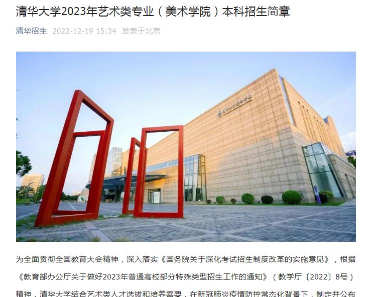 在不久前清华美院取消了设计学类考生的文化单科成绩之后,2022年招生中,清华大学保留了美术学单科成绩的规定,及语文成绩不低于80分(150分制)、外语成绩不低于70分(150分制),不满150分的省市则按150分折算。在2023年的招生简章中,这一条已经彻底消失,成为历史。