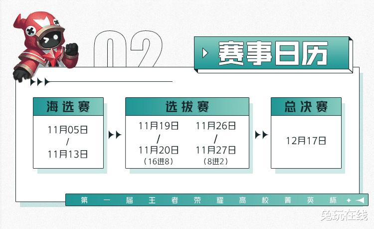 本次赛事共分为海选赛、选拔赛和总决赛三个阶段,海选赛于11月05日开启,经过一个月的高校对抗碰撞,最终将于12月17日角逐出第一届高校菁英杯的总冠军!