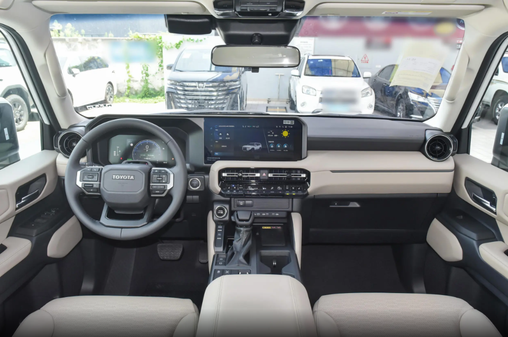 内饰方面:丰田普拉多的车内采用了简洁且实用的设计风格,中控台经过平直线条勾勒之后营造出了不错的层次感。另外硬派越野车往往会存在视觉盲区较大的情况,但是丰田普拉多的前方视野非常宽敞。除了最顶配车型外,全部搭载7英寸全液晶仪表盘(最顶配为12.3英寸)中控屏幕除最低配外,全部为12.3英寸(最低配为10.25英寸)。空调和座椅加热、通风全是实体按键,而且还有一块小屏幕来显示当前的空调温度,一目了然,下方带有无线充电板。