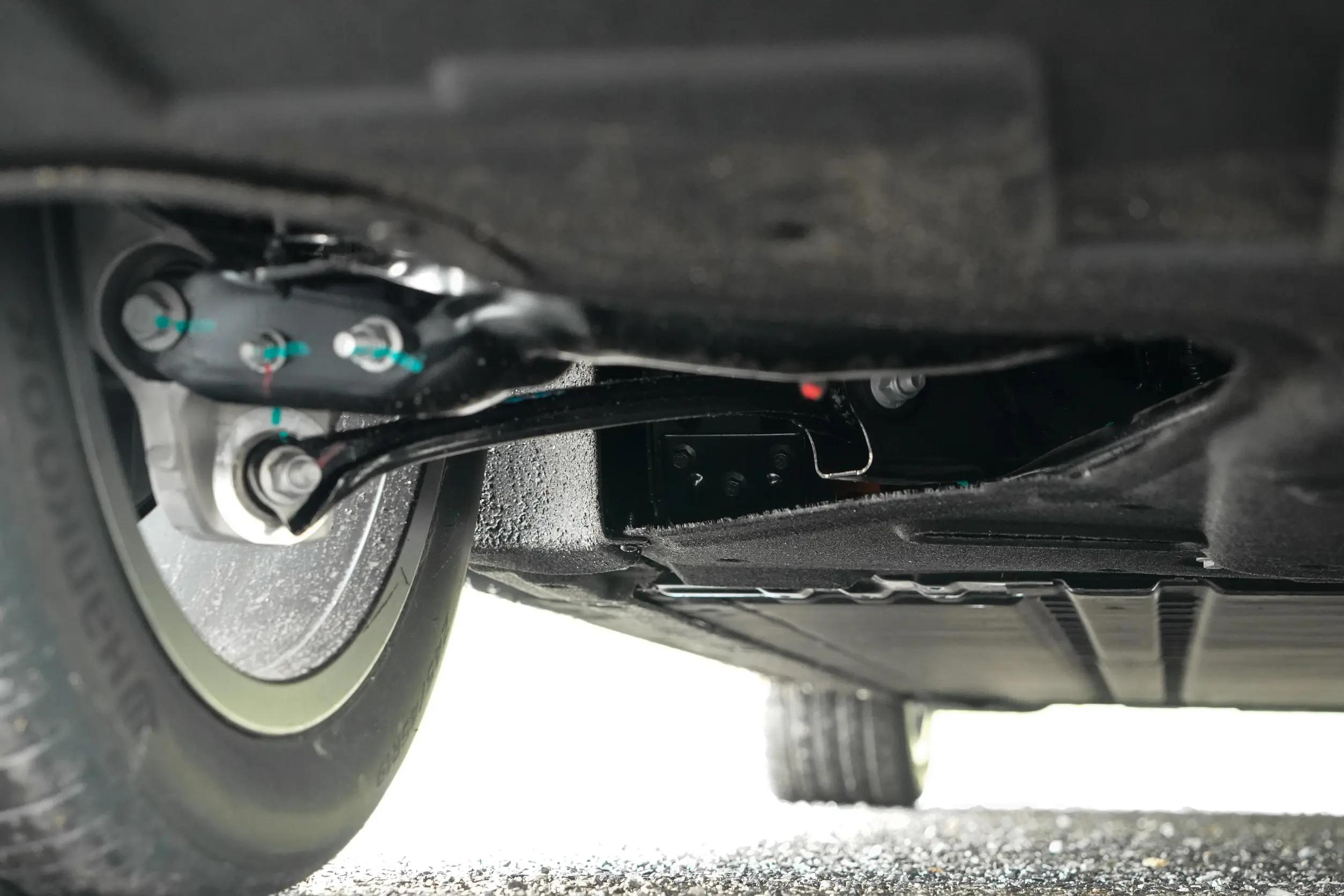 在实际驾驶中,零跑C01的底盘表现相当优秀。得益于CTC电池底盘一体化带来的低重心布局,车辆在高速过弯时展现出极强的贴地感,车身侧倾被精准抑制,方向盘的指向性如手术刀般锐利;前双叉臂与后五连杆悬架的协同工作,配合铝合金轻量化组件,让悬挂响应快如闪电——碾过井盖或减速带时,悬挂“咚-嗒”两声干脆利落,既不生硬传递颠簸,又无多余颤动,仿佛底盘与路面间始终隔着一层韧性十足的空气垫。当激烈驾驶时,减震系统又能迅速撑住车身,连续变道时车尾跟随性极佳,转向回馈力度线性且富有沟通感,这种既能过滤细碎震动、又能扛住激烈操控的矛盾平衡,让人恍惚间有种驾驶豪华运动轿车的错觉。