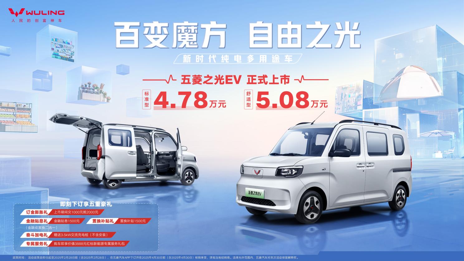 2月14日情人节,五菱之光EV在广州万达广场正式上市,官方指导价4.78万元-5.08万元,推出标准型和舒适型两个版本。这台车,从设计到功能,都实实在在地为创业者和奋斗者考虑,堪称“创富好帮手”。