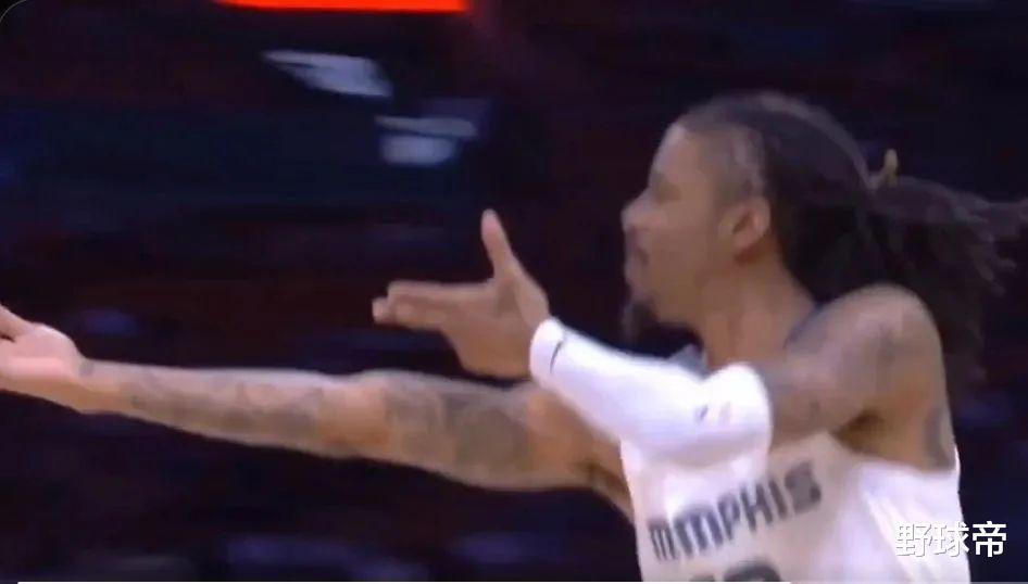 第三节,莫兰特在投进一记三分后做出的庆祝动作令人震惊。
