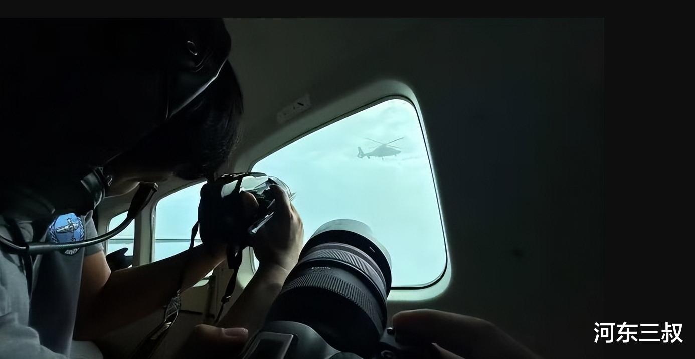 从目前大量高清照片可见,直-9一直处于高空飞行状态,高度始终比C-208要高那么一点,这样的好处是就可以随时实施机动拦截。菲律宾方面的照片显示,直-9座舱内飞行员眼神犀利,手持相机在拍摄取证。可以说随着菲律宾挑衅力度升级,以往无线电警告已经不再有效,直-9这次采用凌空压制方式驱离,说明驱离强度也在不断提升。直升机虽然不是大型战斗机,但高速盘旋时产生的下洗气流,同样会影响到菲律宾巡逻机飞行姿态。
