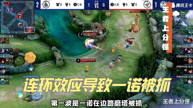 爱思上场只知道保护一诺,甚至都不会带着中路转线,而Cat在节奏方面处理得不到位,很容易上头,依旧喜欢开奔狼抓单。