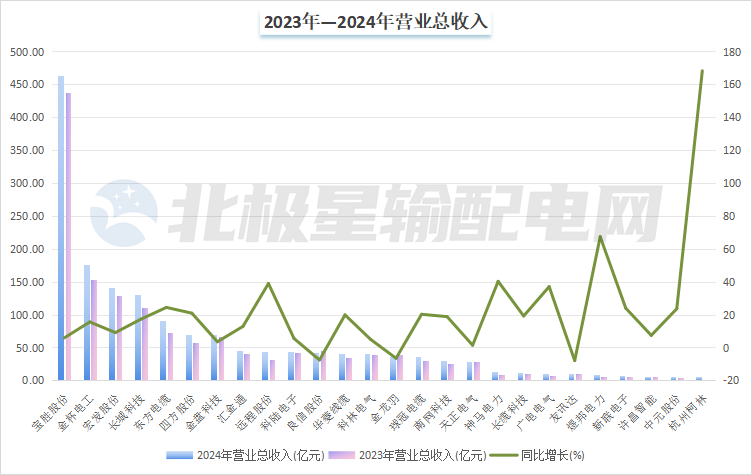 近日,输配电上市企业陆续发布2024年年报,截至4月9日,已有26家电网设备企业发布年报。在本次统计的26家企业中,宝胜股份营业总收入最高,达到463.6亿元,宏发股份净利润最高,达到16.31亿元。