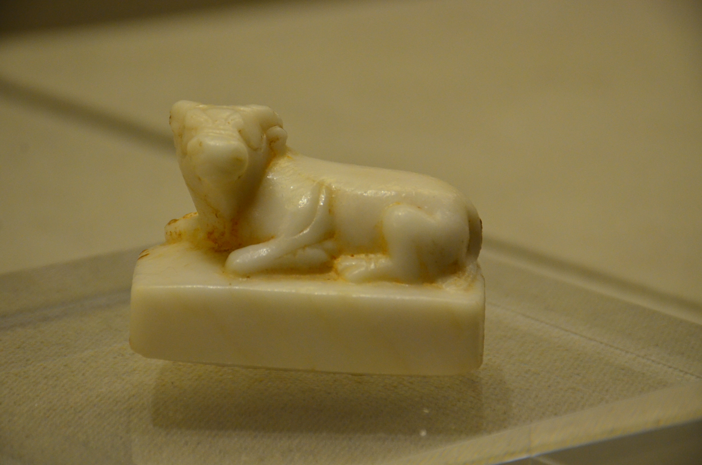 唐代乳色玻璃卧牛镇,是外形雕刻