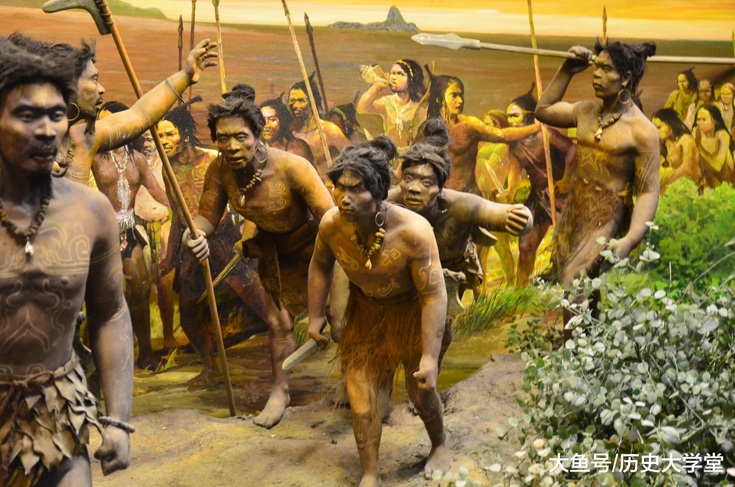 岭南地区的古越族文化,都有哪些鲜明的特征? 这是春秋战国时期岭南地区的古越族塑像群,岭南地区的古越族文化带有鲜明的特征,例如使用段石锛、双肩石斧和几何印纹陶器,擅长舟楫,饭稻羹鱼,文身断发,居住干栏式房屋等。#历史# #古越族#